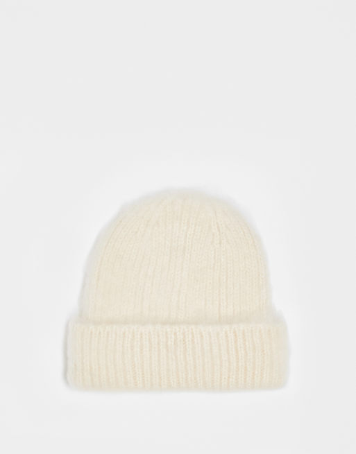 COLLUSION – Czapka beanie ze szczotkowanej dzianiny w kolorze ecru