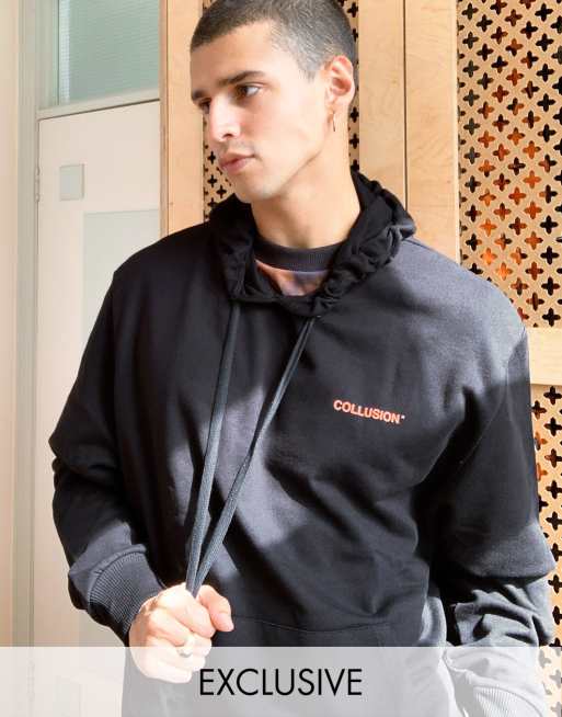 COLLUSION – Czarna bluza oversize z kapturem i nadrukiem logo