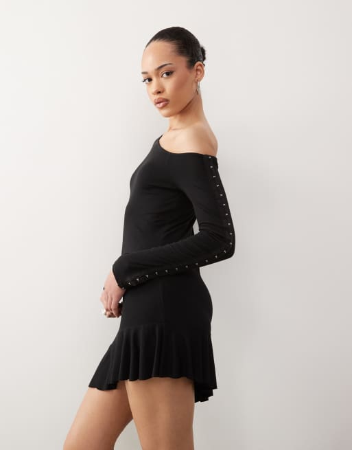 COLLUSION – Czarna zapinana na haftki sukienka