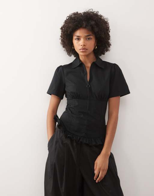 COLLUSION – Czarna zwężana w talii koszula z zapięciem na zamek