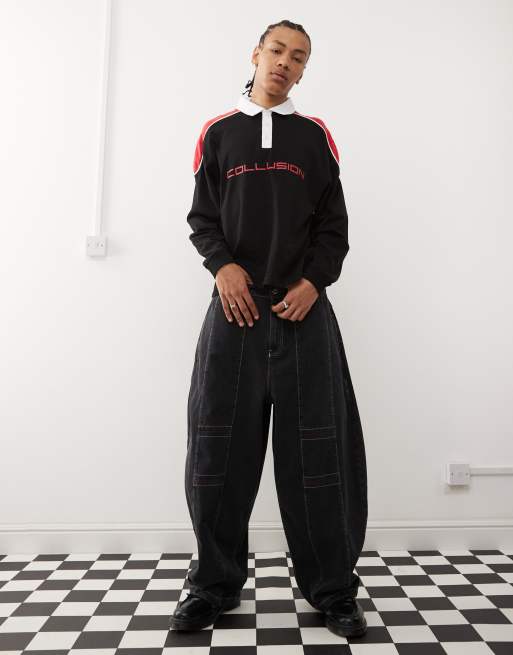 COLLUSION – Czarne jeansy joggersy z ozdobnymi szwami
