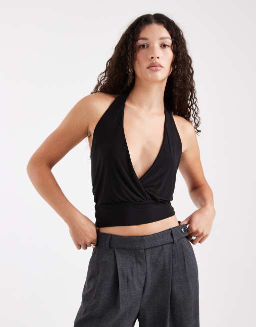 COLLUSION – Czarny kopertowy top z dekoltem halter