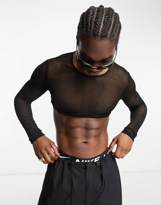 COLLUSION – Czarny krótki siateczkowy top z długimi rękawami