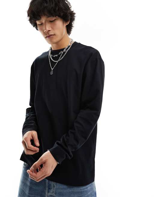 COLLUSION – Czarny prążkowany T-shirt z długimi rękawami