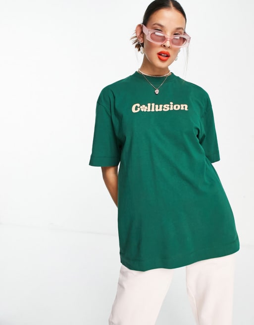 COLLUSION – Czarny w kolorze khaki z nadrukiem logo: T-shirt, bluza oversize i szorty - zestaw