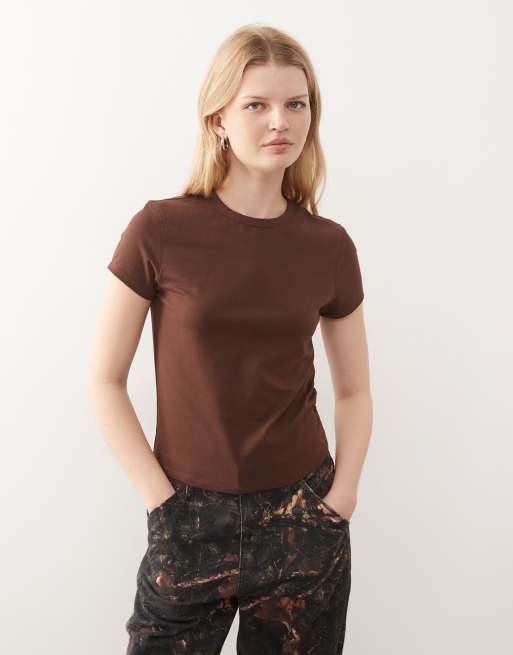 COLLUSION – Czekoladowy dopasowany T-shirt