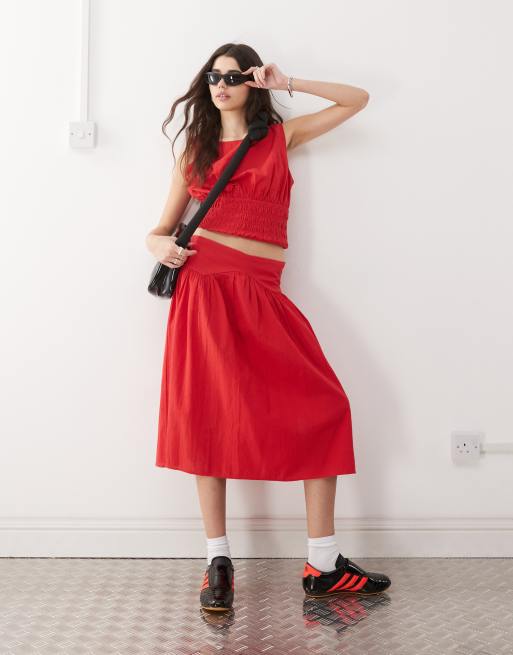 COLLUSION – Czerwona spódnica midi z materiału o wyglądzie lnu z obniżonym stanem, część zestawu