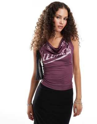 COLLUSION – Czerwony top z drapowanym dekoltem i graficznym wzorem
