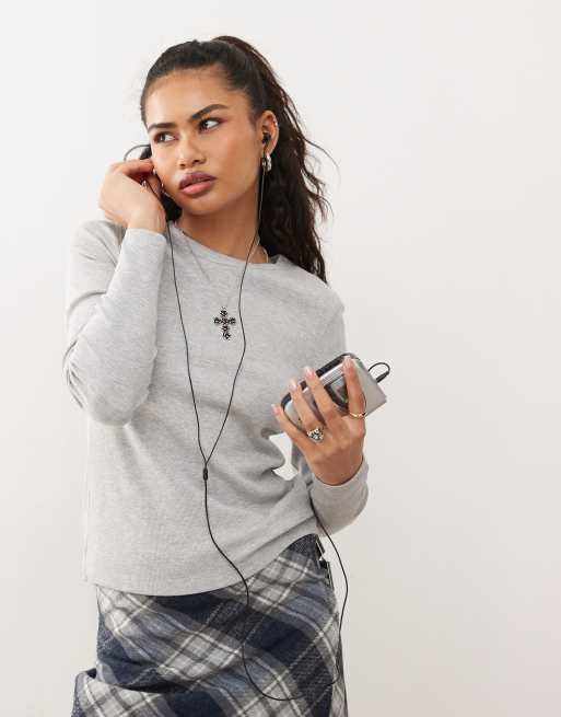 COLLUSION – Dopasowany T-shirt z dzianiny pointelle w szarym melanżowym kolorze