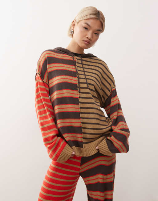 COLLUSION – Dzianinowa bluza z kapturem i mieszanym wzorem w paski, część zestawu
