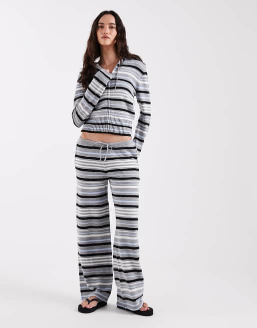 COLLUSION – Dzianinowy zestaw w szaro-niebieskie paski