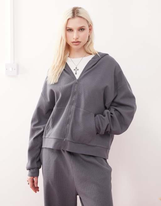 COLLUSION – Grafitowa pudełkowa bluza oversize z kapturem o waflowej fakturze, część zestawu