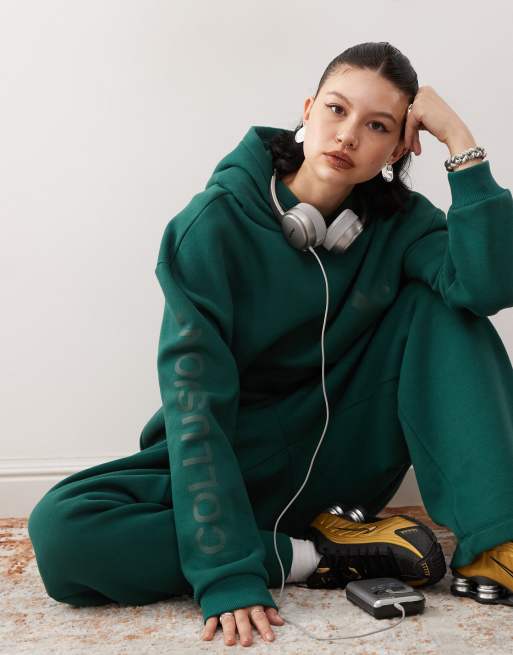 COLLUSION – Gruba zielona bluza z kapturem i logo