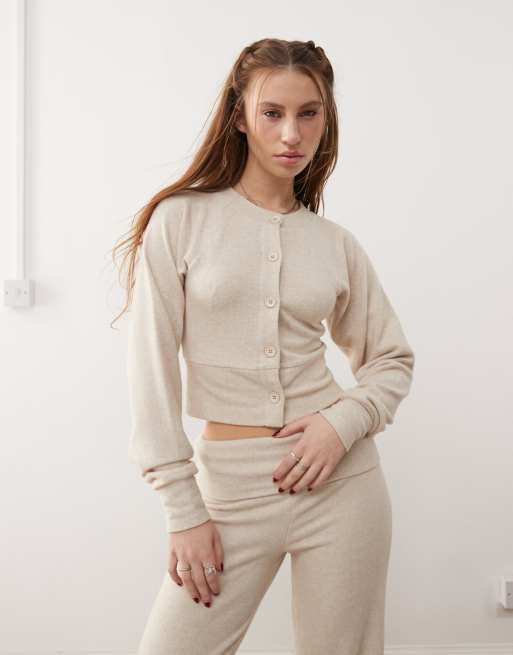 COLLUSION – Jasnobeżowy przytulny kardigan zapinany na guziki, część zestawu