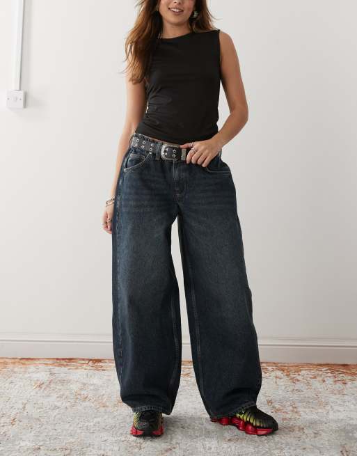 COLLUSION – Jeansowe joggersy z balonowymi nogawkami z efektem sprania