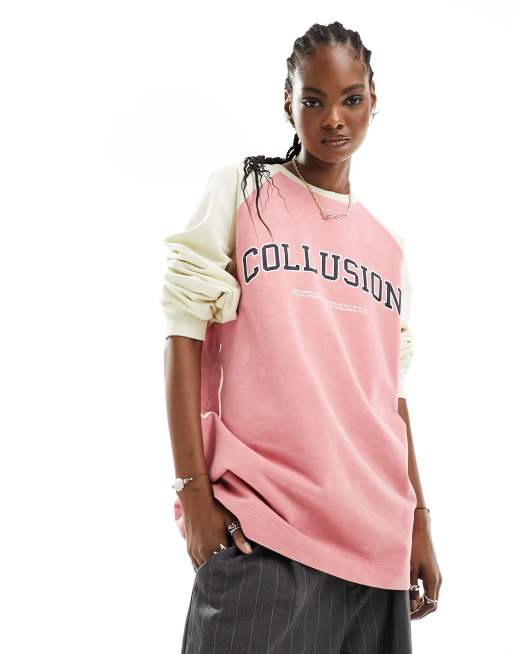 COLLUSION – Kolorowa bluza dresowa z długimi rękawami w uczelnianym stylu