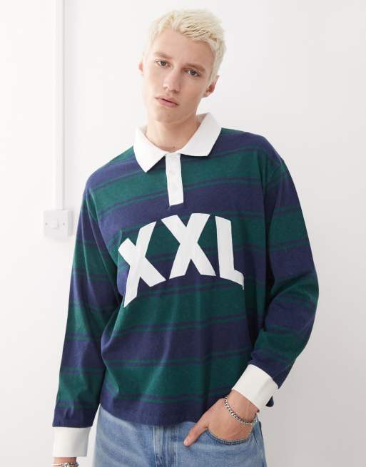 COLLUSION – Kolorowa koszulka polo w paski z długimi rękawami i wyhaftowanym XXL