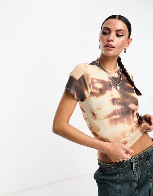 COLLUSION – Kolorowy dopasowany top z krótkimi rękawami w abstrakcyjny wzór
