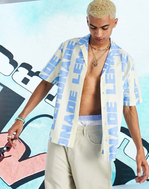 COLLUSION – Koszula o pudełkowym kroju z kołnierzykiem kubańskim i napisami na całej powierzchni