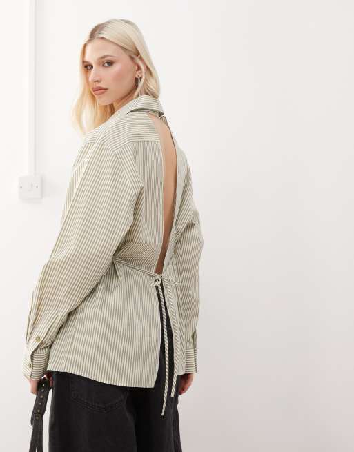 COLLUSION – Koszula w zielone i białe paski z odkrytymi plecami