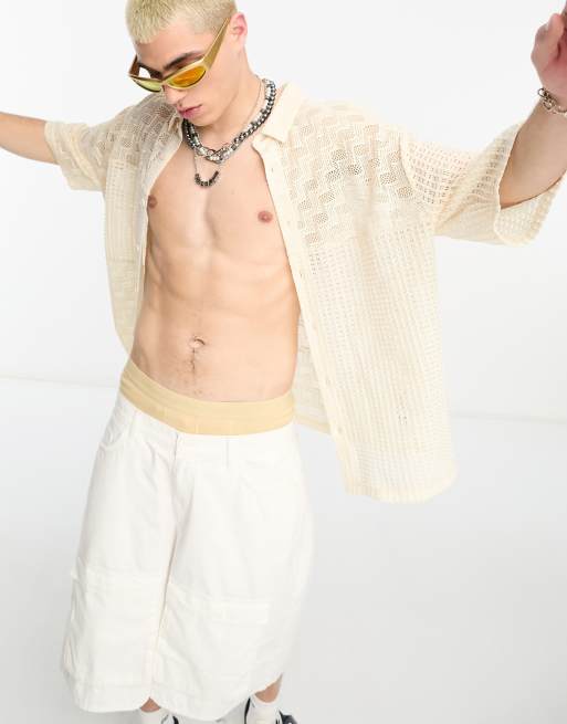 COLLUSION – Kremowa dzianinowa koszula festiwalowa z krótkimi rękawami