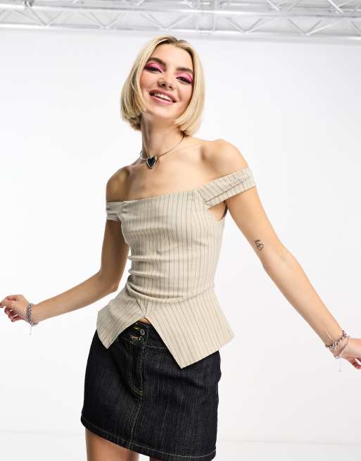 COLLUSION – Kremowy gorsetowy top w prążki