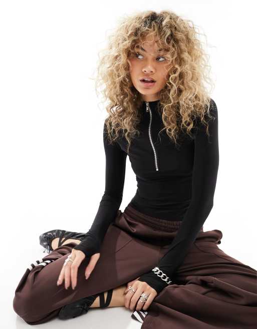 COLLUSION – Krótki czarny top z długim rękawem i suwakiem pod szyją