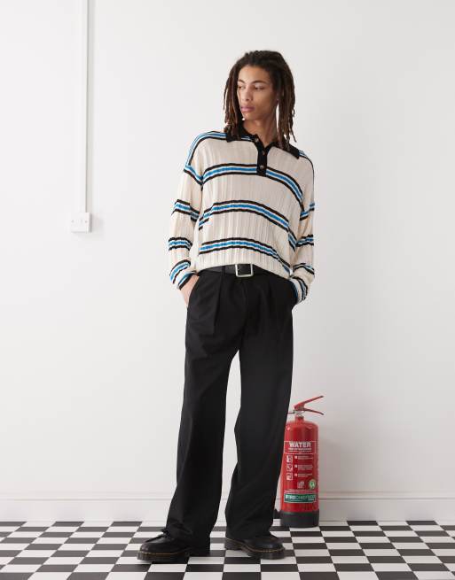 COLLUSION – Lekki dzianinowy kremowy sweter z długim rękawem i kołnierzykiem polo