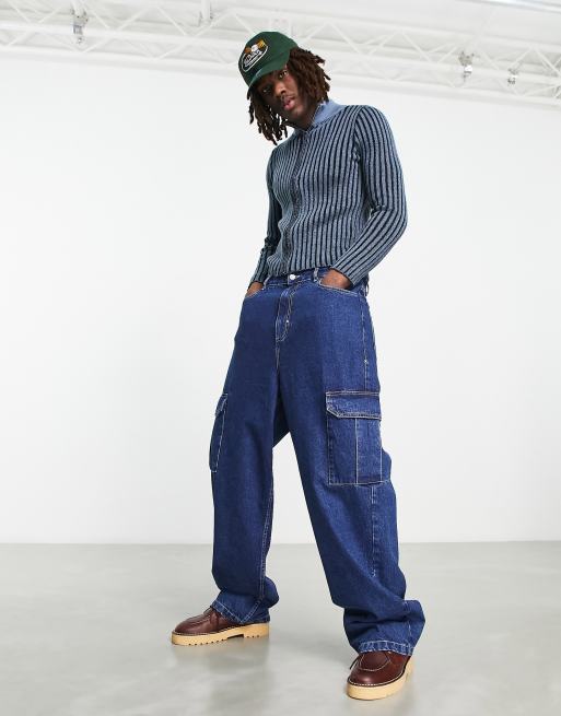 COLLUSION – Luźne jeansy bojówki antifit w kolorze indygo z kontrastowymi szwami