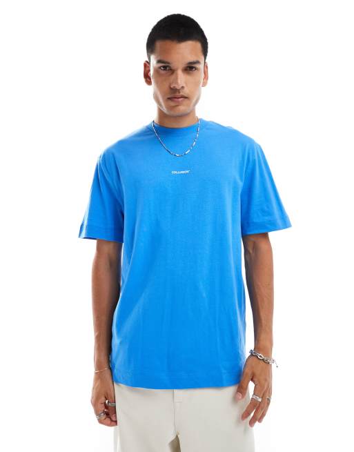 COLLUSION – Niebieski T-shirt z logo na środku