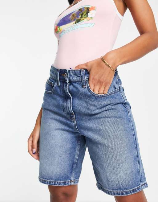 COLLUSION – Niebieskie dżinsowe szorty o wydłużonym fasonie – MBLUE