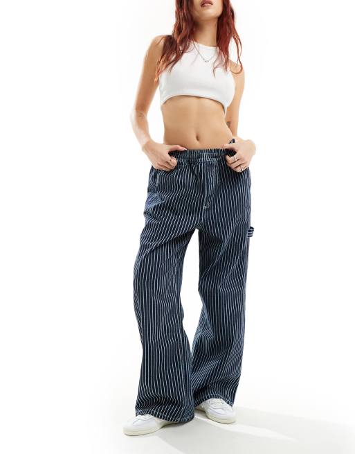 COLLUSION – Niebieskie wciągane spodnie bojówki w prążki