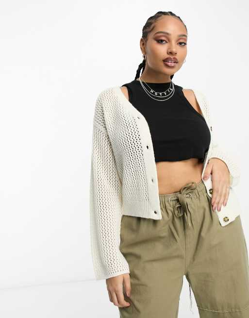 COLLUSION Plus – Biały kardigan z szydełkowanej dzianiny