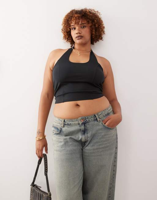 COLLUSION Plus – Czarny top z dekoltem halter i wypustkami