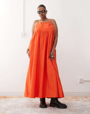 COLLUSION Plus – Pomidorowoczerwona sukienka letnia maxi