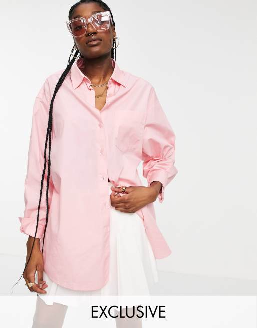 COLLUSION – Różowa bawełniana koszula oversize - PINK