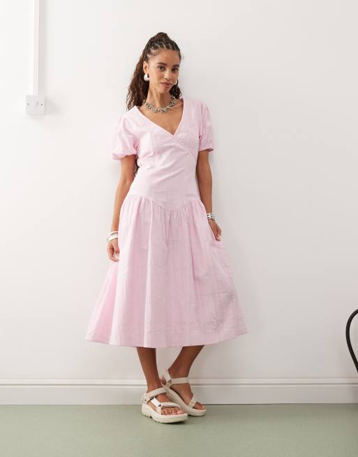 COLLUSION – Różowa sukienka maxi z bufkami i obniżonym stanem