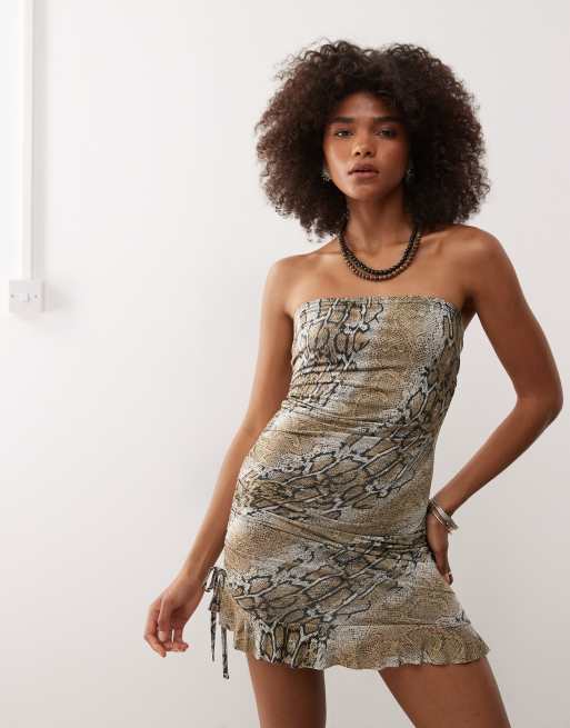 COLLUSION – Sukienka mini z dekoltem bandeau we wzór skóry węża