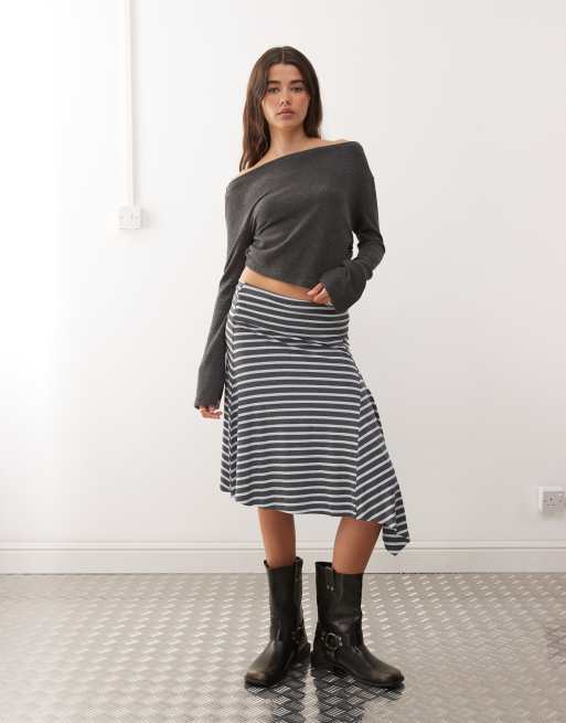 COLLUSION – Szara asymetryczna spódnica midi w paski