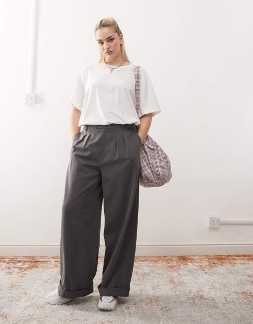 COLLUSION – Szare dopasowane spodnie z szerokimi nogawkami
