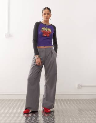 COLLUSION – Szare spodnie z szerokimi nogawkami z zakładkami