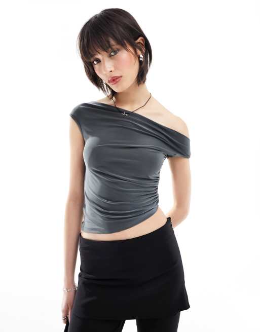 COLLUSION – Szary obcisły top z odsłoniętymi ramionami