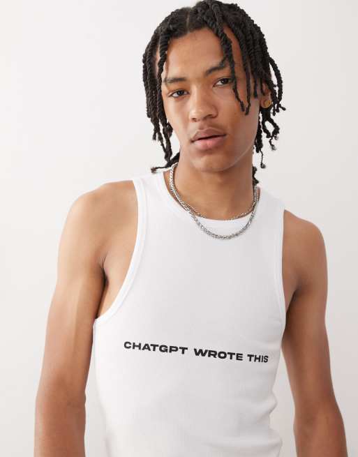 COLLUSION – Szary podkoszulek o kroju podkreślającym sylwetkę z napisem CHAT GPT