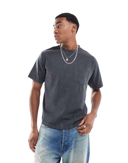 COLLUSION – T-shirt o pudełkowym kroju z krótkim rękawem w spranym szarym kolorze