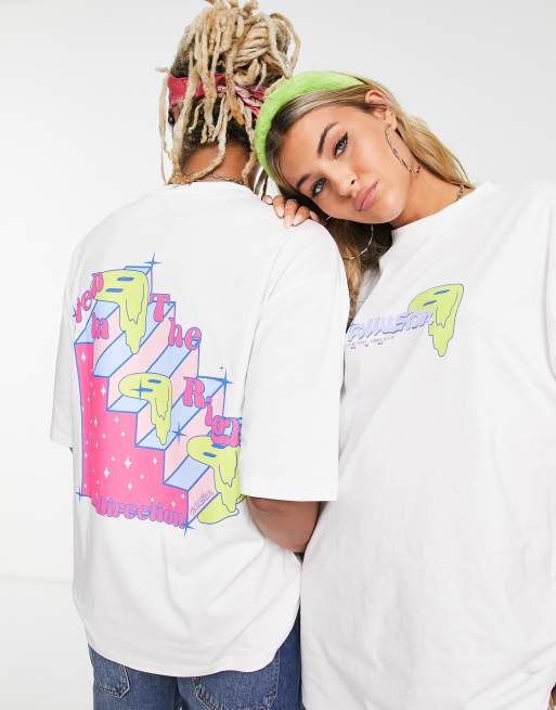 COLLUSION Unisex – Biały T-shirt oversize z neonowym nadrukiem