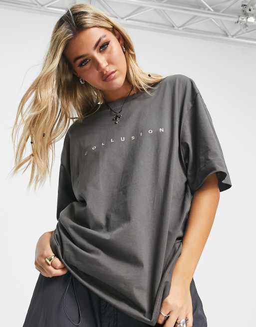 COLLUSION Unisex – Ciemnozielony T-shirt z logo