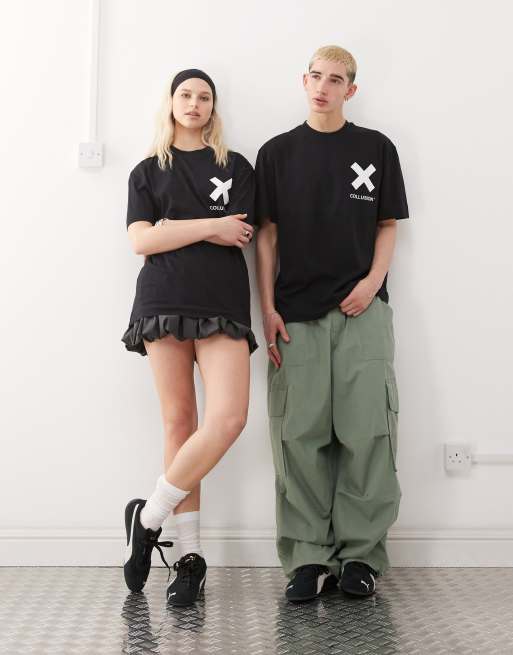 COLLUSION Unisex – Czarny bawełniany T-shirt z logo
