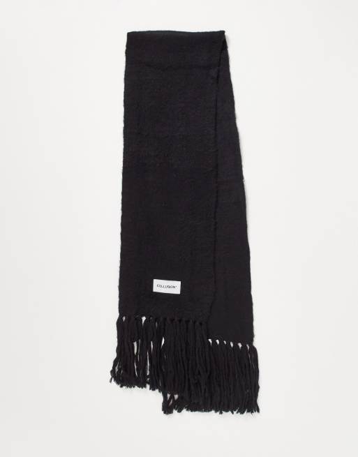 COLLUSION Unisex – Czarny szalik z puszystej dzianiny z logo