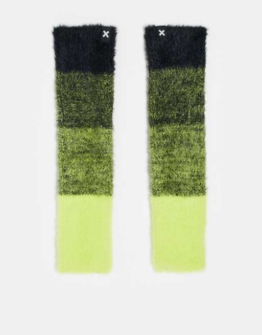 COLLUSION Unisex – Neonowożółte ocieplacze na ręce z puszystej dzianiny z efektem ombre