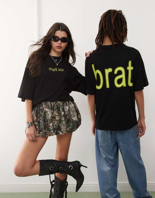 COLLUSION Unisex – Official Charli XCX BRAT – Czarny T-shirt skater o pudełkowym kroju z nadrukiem